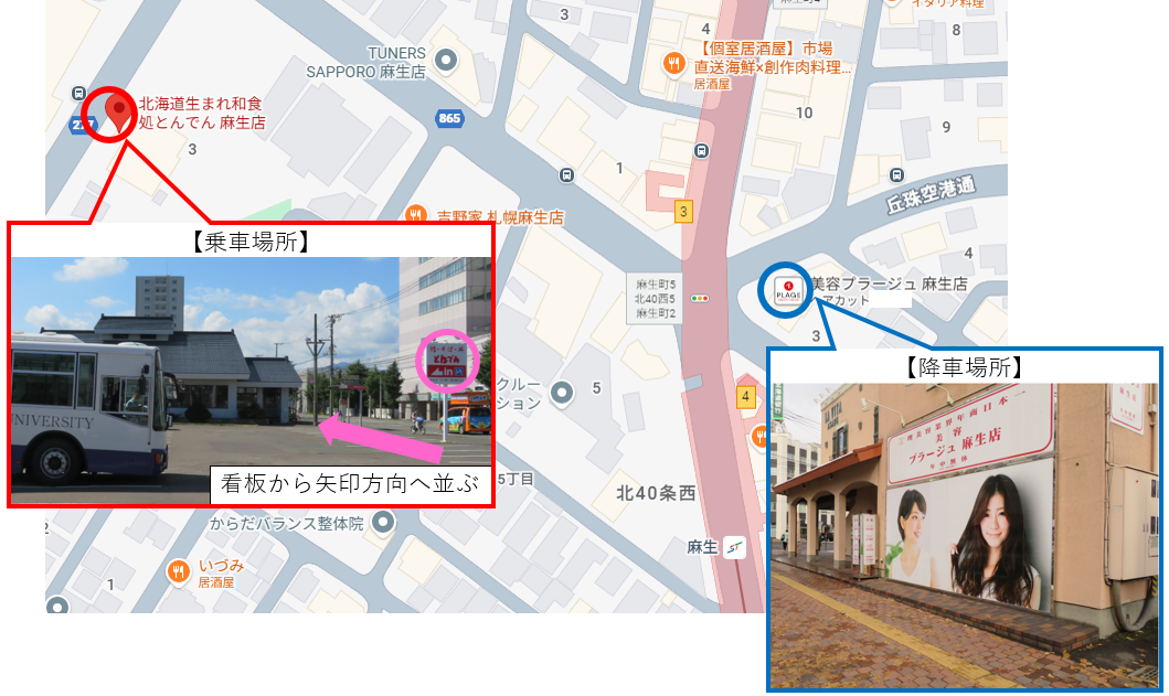 ■降車場所:美容プラージュ麻生店付近