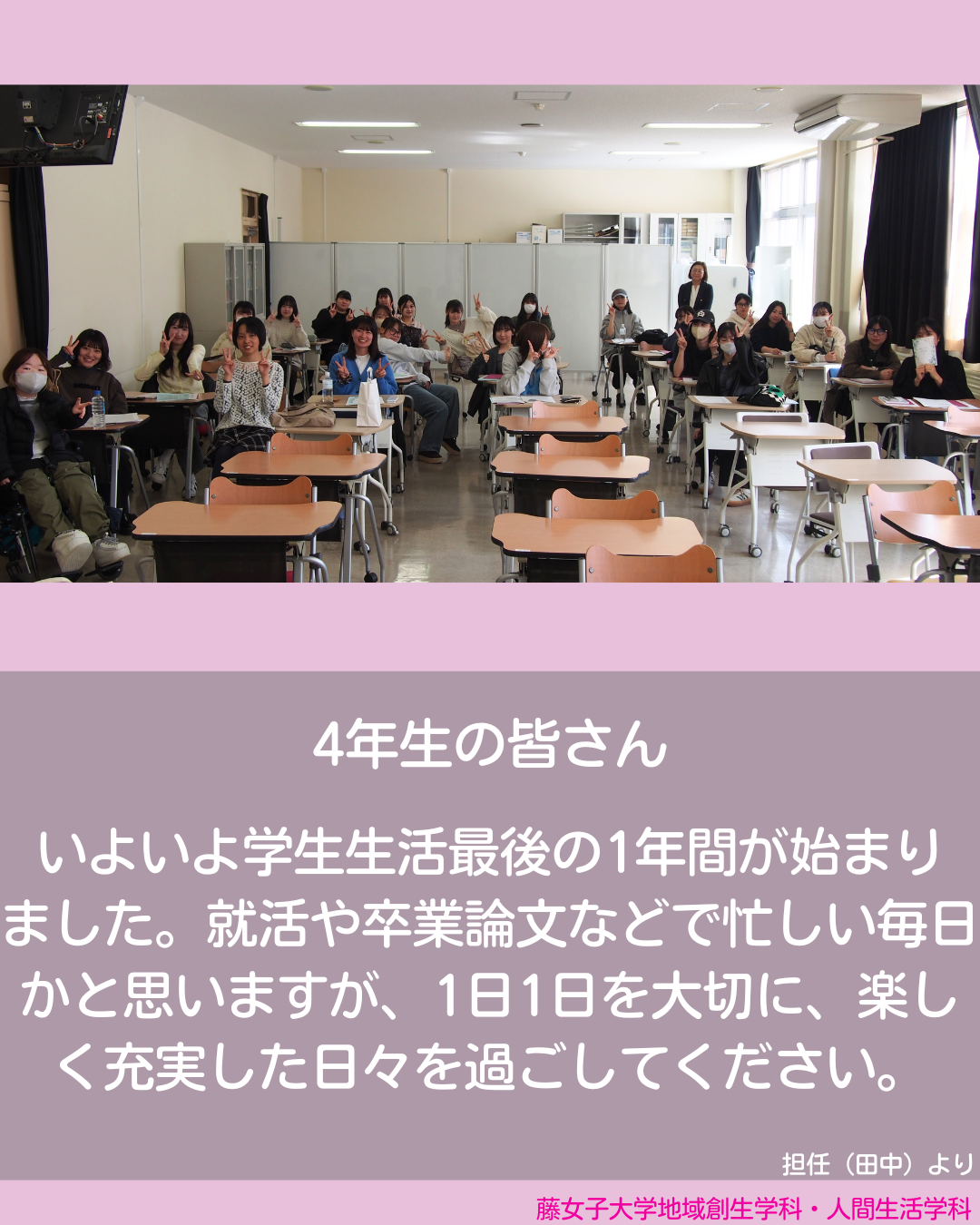 今年度も学生たちが学びを深め、充実した日々を過ごせるよう、学科教職員一同しっかりとサポートしていきたいと思います。