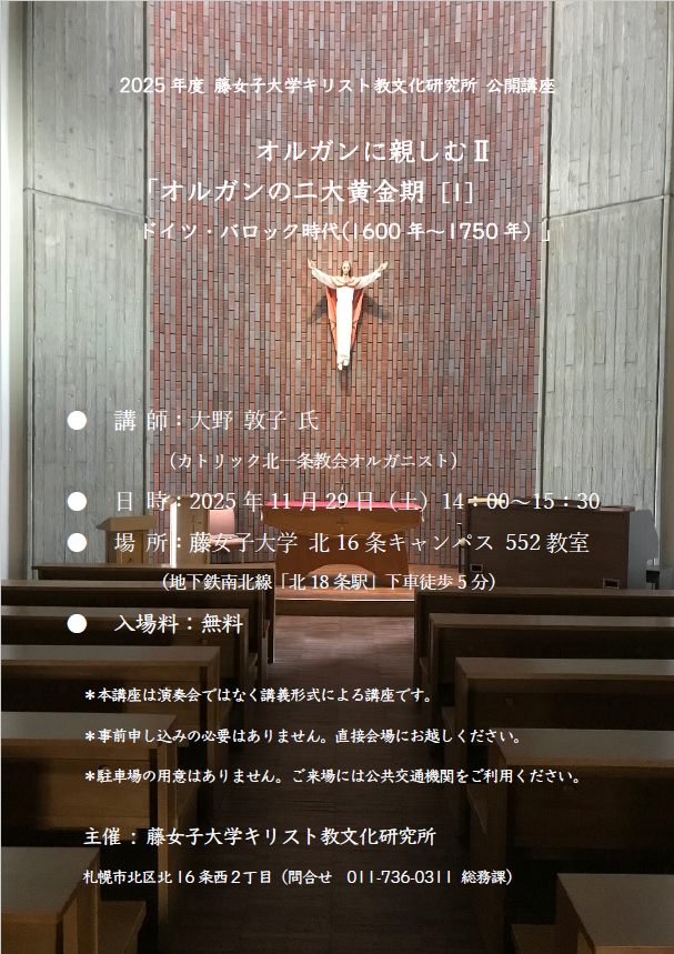 ●講 師:大野 敦子 氏 (カトリック北一条教会オルガニスト)