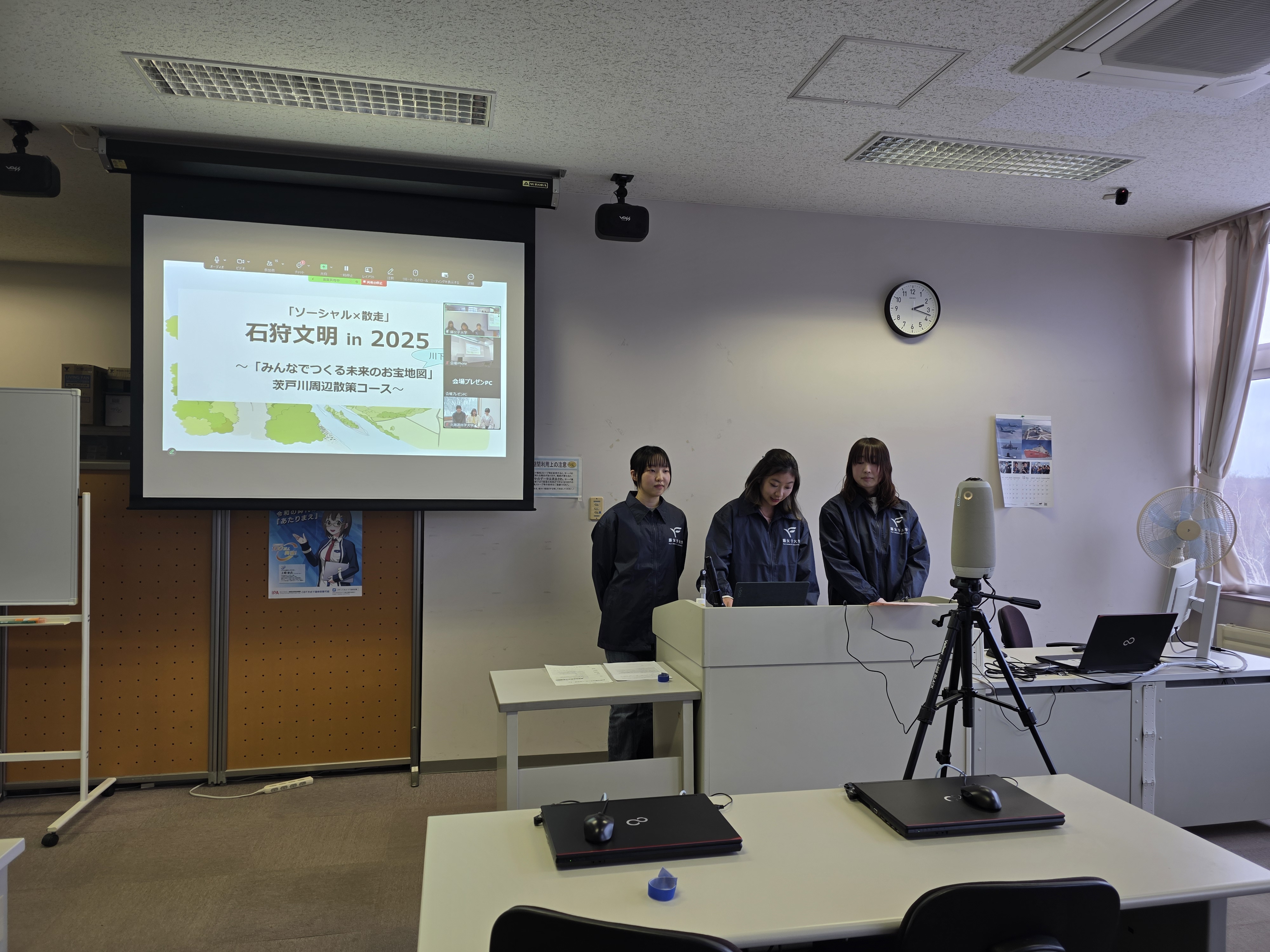 チームが提案した石狩川をテーマにした企画「石狩文明 in 2025」は、地域の魅力や歴史を自転車で巡る「散走」の視点で捉え直したものです。今年2月20日(金)には「北海道『散走』ミーティング」にも登壇し、活動の集大成として企画の発表と意見交換を行いました。